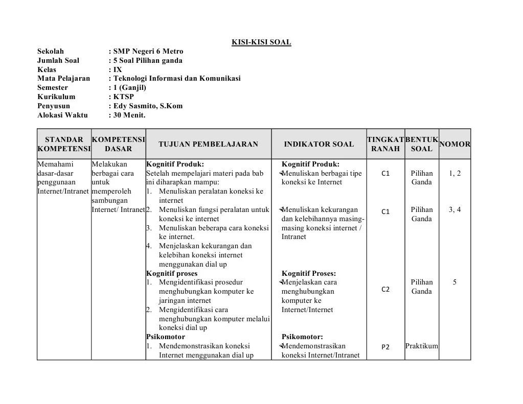 Contoh Kisi2 Soal / Contoh Kisi Kisi Soal Fiqih Ma Mobifasr : No materi level kognitif indikator soal no