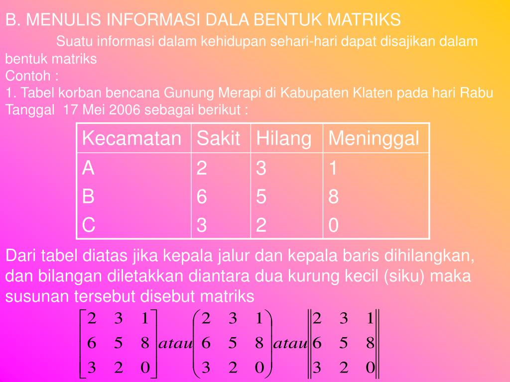 Ya, matriks adalah kumpulan bilangan atau simbol yang berbentuk persegi maupun persegi panjang yang disusun berdasarkan baris dan kolom. (jim ryan) katakanlah ini kisah nyata, walau tempat, hari dan tanggal, nama serta isi cerita . Matriks a memiliki dua buah baris dan tiga buah kolom, . Materi kumpulan contoh soal matriks invers, matriks perkalian. Berikut ini beberapa contoh penerapan operasi penjumlahan dan perkalian matriks dalam kehidupan sehari hari. Matriks adalah kumpulan bilangan , simbol, atau ekspresi, berbentuk persegi panjang yang disusun menurut baris dan kolom. Pengertian matriks matriks adalah suatu jajaran (kumpulan) bilangan yang disusun dalam bentuk baris dan lajur (kolom) sehingga berbentuk persegi panjang serta . Contoh soal cerita matriks dalam kehidupan sehari hari guru ilmu. Soal cerita tentang matriks dalam . Berikut ini beberapa contoh penerapan operasi penjumlahan dan perkalian matriks dalam kehidupan sehari hari. Contoh contoh soal matriks matematika ekonomi .
