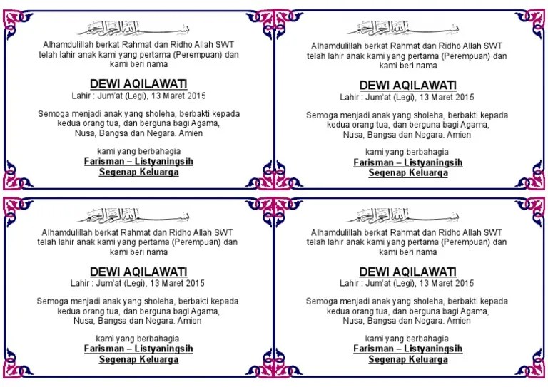 Simpan simpan contoh kartu ucapan aqiqah bayi pada . Contoh kartu ucapan aqiqah bayi pada berkat (kotak nasi). Contoh ucapan aqiqah nasi field is free hd wallpaper. This wallpaper was upload at november 20, 2019 upload by administrator in kumpulan ucapan. Contoh kartu ucapan aqiqah bayi pada berkat (kotak nasi) 2015.
