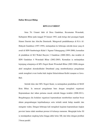 Nice contoh daftar riwayat hidup anak sd 46 bagi inspirasi via gawecv.com. Lencana tidak terkunci yang menunjukkan sepatu bot . Buatlah sebuah contoh formulir daftar riwayat hidup (untuk sd ya kak). Daftar riwayat hidup harus berisi identitas diri, pengalaman, kualifikasi pendidikan, hingga berbagai informasi yang dapat menunjang pekerjaan . 18 tahun tempat/tanggal lahir : Bahkan contoh daftar riwayat hidup tidak hanya dalam kepemilikan saja, namun memang sangat penting untuk anda perhatikan sebelum melamar kerja. Cantumkan riwayat pendidikan, mulai dari sekolah dasar hingga pendidikan terakhir. Sertakan tahun lulus, dan jurusan. Surat daftar riwayat hidup contoh berikut digunakan untuk seseorang yang sudah memiliki pengalaman pekerjaan. Bogor, 22 januari 1998 agama : Selain surat lamaran kerja, tentu anda juga membutuhkan yang namanya cv (curriculum vitae) untuk melamar sebuah pekerjaan. Contoh daftar riwayat hidup anak sekolah mesum, contoh daftar riwayat hidup anak sekolah video, contoh daftar riwayat hidup anak sekolahan, . Cv merupakan aspek penting yang .