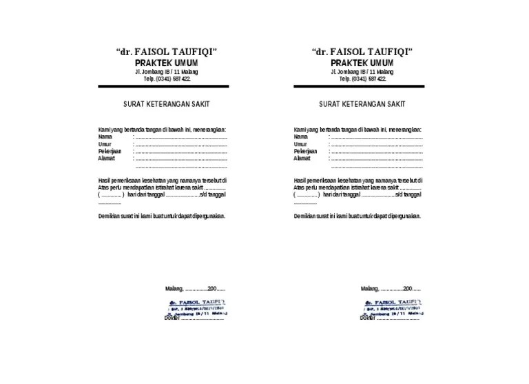 Surat keterangan sakit docx contoh surat keterangan dokter surabaya surat dokter kosong surabaya pdf contoh surat dokter rumah sakit islam .