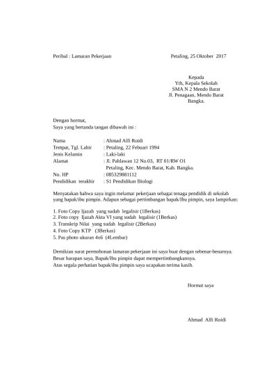 Yth kepala sma negeri 1 gejayan di tempat dengan contoh lamaran kerja mengajar. Baik dari guru tk, sd, smp, sma, honorer, dan lain sebagainya.